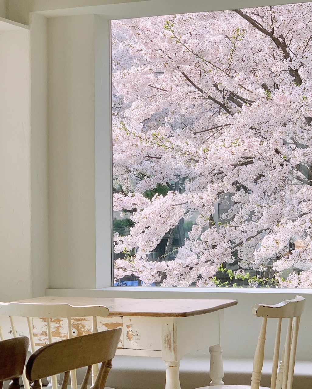 벚꽃시즌에 카페 내외부로 사진을 찍는 사람들로 북적이는 곳입니다. 이곳 역시 통창으로 벚꽃뷰가 보여 벚꽃을 구경하기 좋은 곳이니 꼭 한 번 방문해 보세요!